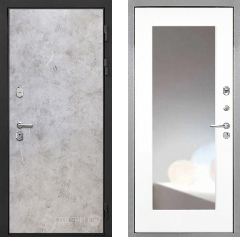 Входная Дверь Интекрон (INTECRON) Гектор Мрамор Светлый ФЛЗ-120-М Зеркало Белый матовый 860x2050 мм